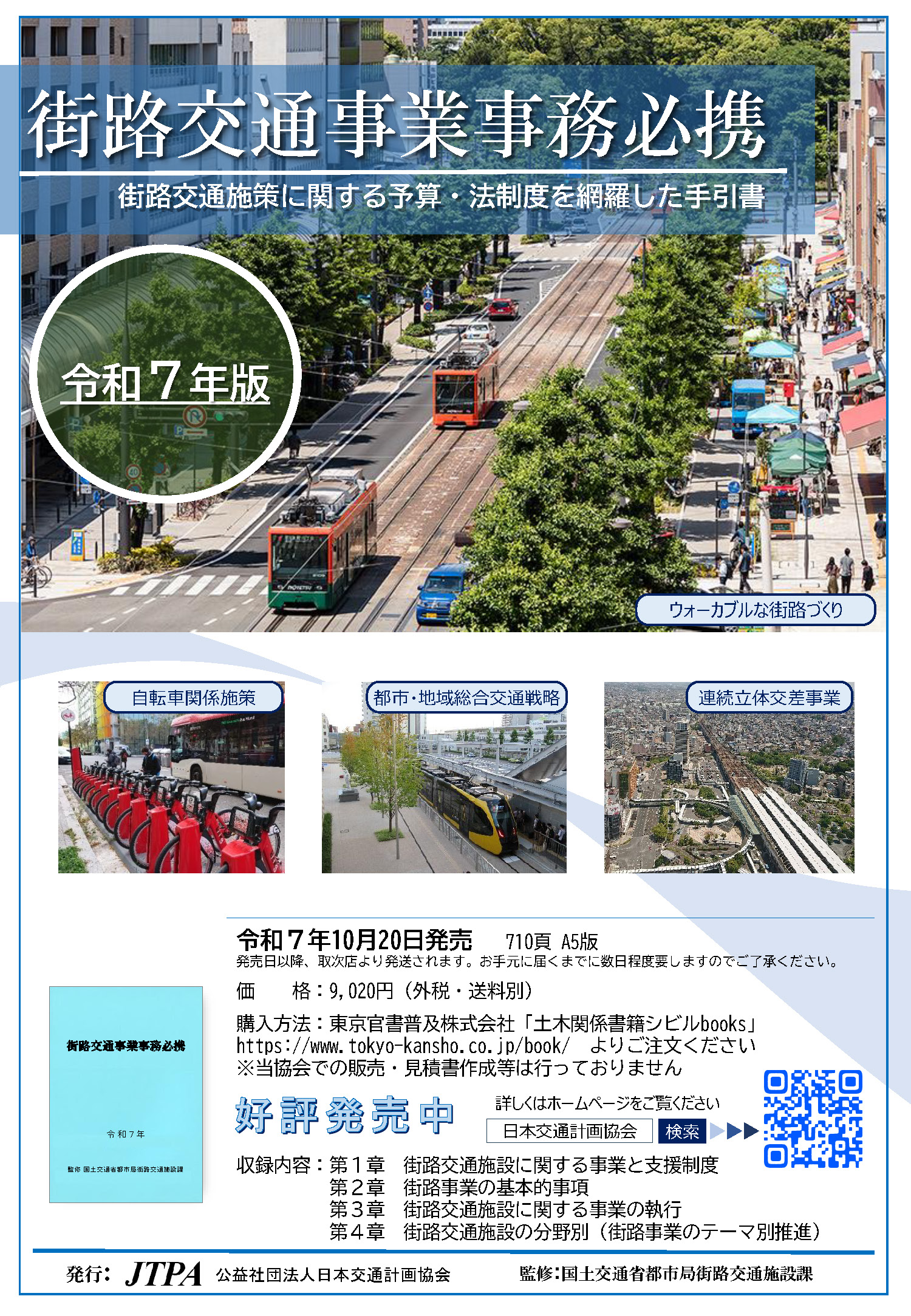 街路交通施策によるまちづくりをより円滑に進めるため、実務に携わる方々に大いに活用され、街路交通施策事業の推進に資することを目的に編集しております。